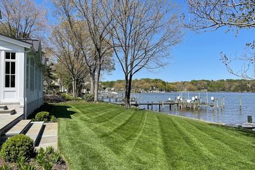 We top-dress/compost the lawn. Compost is an all-organic leaf grow topsoil mix. It's very similar to fertilizer services that many people use however with the Chesapeake Bay, this is a very healthy option. The soil is able to absorb the nutrients versus having a massive amount of run-off during storms.
